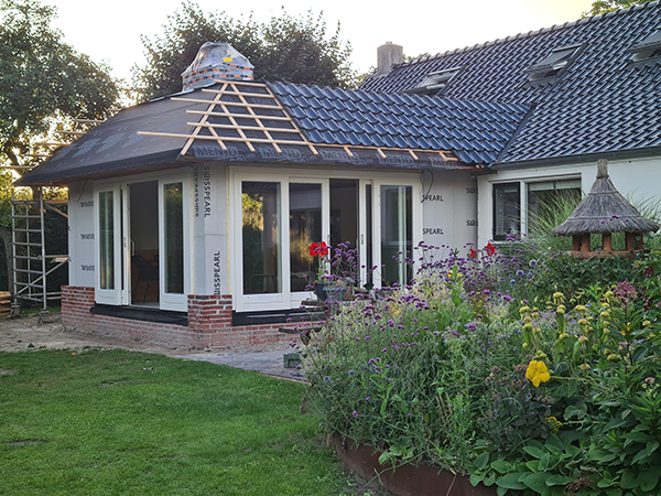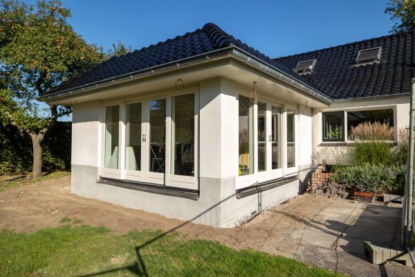 Voor een particuliere opdrachtgever hebben wij een aanbouw passend bij de woning mogen realiseren. De aanbouw is voorzien van twee 4 delige houten schuifpuien welke wij in eigen timmerfabriek hebben geproduceerd.